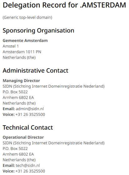– Dutch SIDN maintains gTLD operational requirements for .amsterdam and .politie.